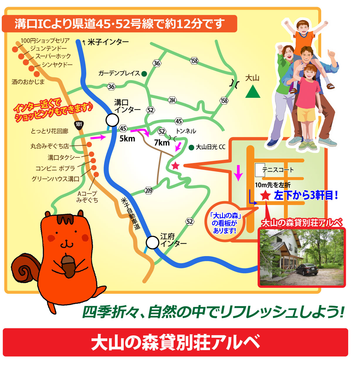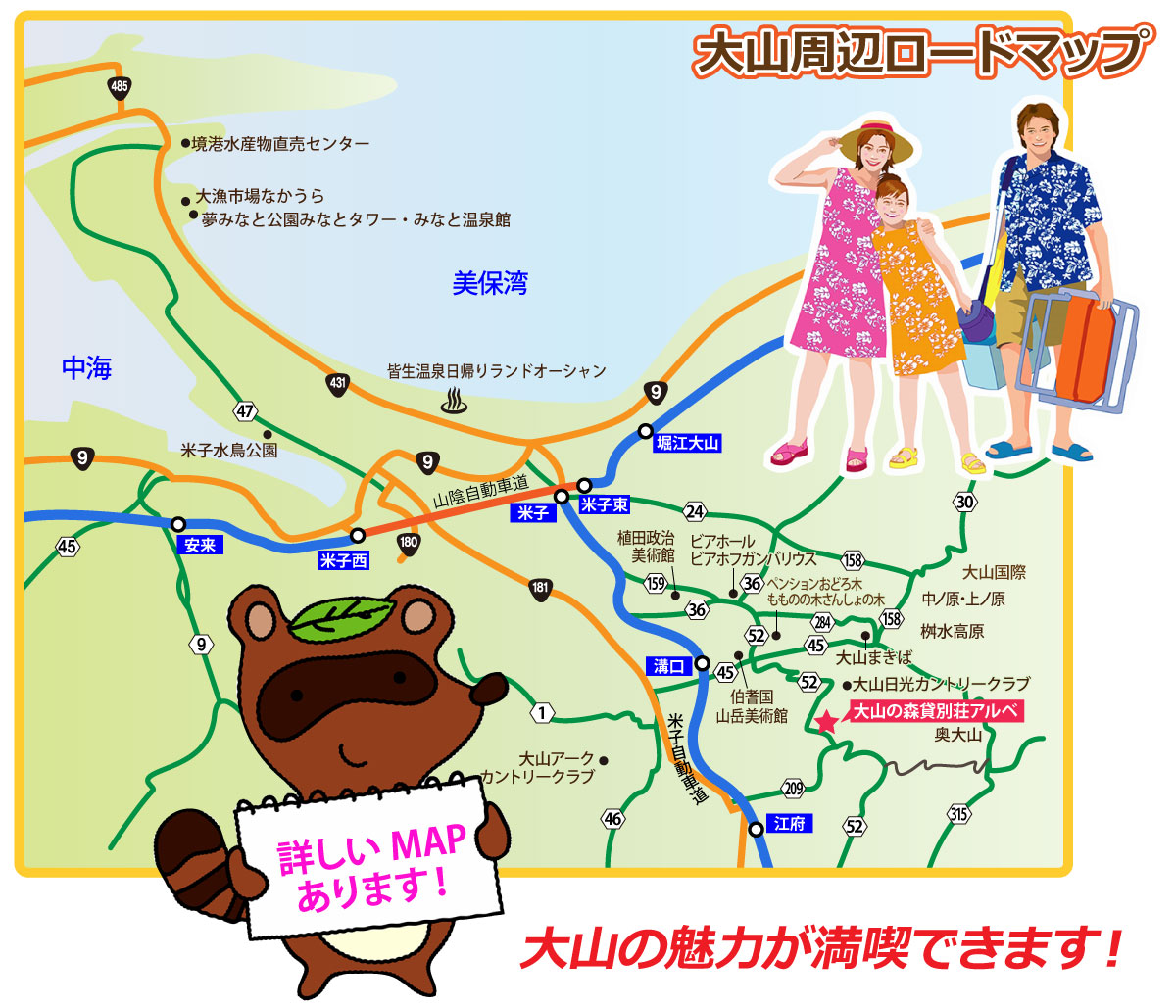 大阪から車で約3時間・広島から約3時間の貸コテージ<アルベ>。米子や境港へのアクセスも便利。